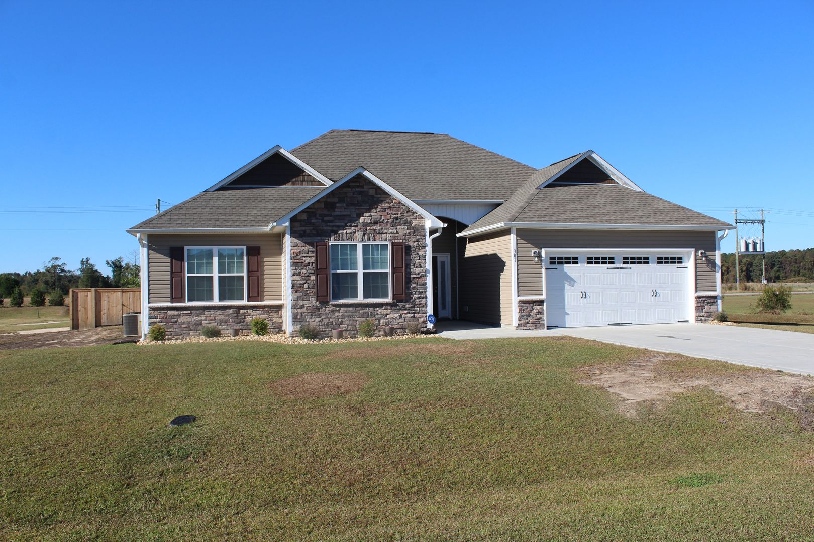 This one still smells new! Built in 2020, this 3 bed, 2 bath home looks just like the day it was purchased. Beautiful dark hardwood floors run throughout the main living areas. Large living room with gas logs fireplace opening up to a great sized kitchen with SS appliances, granite countertops, double pantry, and breakfast bar. The master features a large walk in closet, en suite with double vanity, large soaking tub, and separate showers. Two large guest bedrooms and a guest bathroom complete the home! Relax outdoors on the back patio in the privacy fenced backyard.